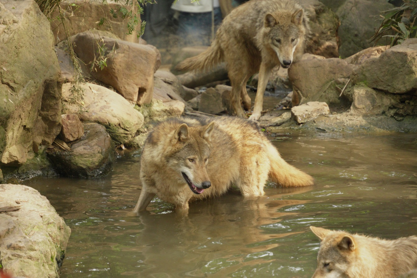 红山森林动物园模拟野外生态环境,建成狼群捉鱼特色场所