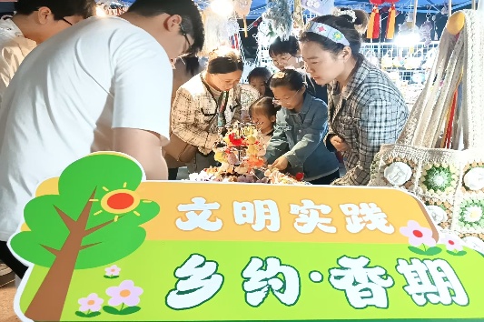 五一白蒲庙会上,文明实践员们早早到岗:入口处的引导员手持指示牌,在熙攘人群中开辟出一条安全通道;摊位间的巡查员细心规范商品摆放,既保留传统庙会的烟火气,又维护整洁有序的市场环境;便民服务点里,志愿者为老人递上茶水,帮走失儿童寻找家人。他们用细致入微的服务,让千年庙会焕发新时代的文明光彩。
