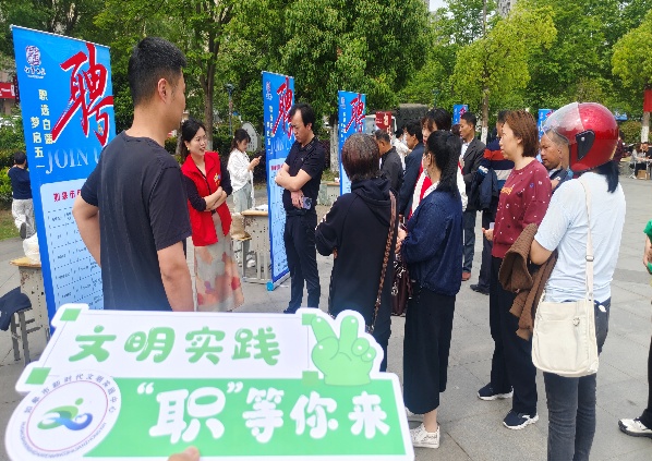 白蒲镇“五一”专场招聘会上,文明实践员们不仅是会场的“活地图”,指引求职者快速找到心仪企业的展位;更是政策的“解读员”,用通俗易懂的语言讲解最新的就业扶持政策。这些贴心的服务细节,让求职者感受到“就业路上有人同行”的温暖。