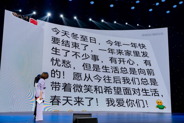 发布会现场还借助AI技术呈现了一段边晓斌的生前寄语。斯人已逝,浩气长存。这段视频带给边晓斌家属心灵的慰藉,同时也激励更多人微笑面对生活,永远向前看。