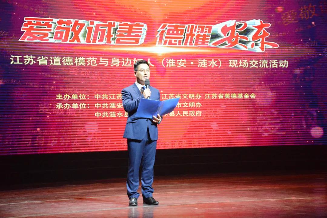 淮水川流不息,五岛碧波荡漾。这里是千年古城、红色热土,新时代文明实践的主旋律正在安东大地恢弘唱响。文明播撒芬芳,传递大爱无疆,这里是文明之城、厚德之乡,爱敬诚善的旗帜在每一个涟水人的心中高高飘扬。5月29日下午,“爱敬诚善·德耀安东”——江苏省道德模范与身边好人(淮安·涟水)交流活动在县大剧院举行?;疃墒∥?、省文明办、省美德基金会主办,市委宣传部、市文明办和县委、县政府承办。