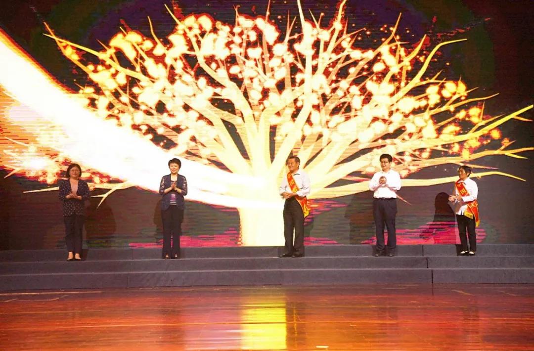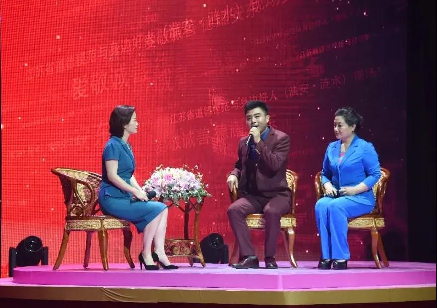 △省文明办副主任公永刚,副市长王红红,县委书记王向红和中国好人孙茂顺、蒋秀英共同揭晓5月份江苏好人、江苏新时代好少年。