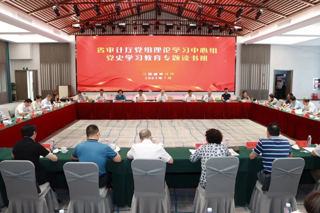 全省审计机关把学懂弄通习近平新时代中国特色社会主义思想作为首要政治任务和文明创建的重要内容,省厅构建厅党组、理论学习中心组、党支部、党员干部和青年干部“五级联学”机制。全省审计机关各级党组理论学习中心组定期开展集中学习,同时组织多形式、分层次、全覆盖的学习培训,把中国特色社会主义和中国梦宣传教育渗透到审计干部日常学习教育、综合培训、主题党日等活动中。在全省审计机关广泛开展“走进革命传统教育基地、走进工厂车间、走进基层一线、走进社区群众”系列主题活动、“沿着红色足迹学党史”系列活动;举办全省审计系统“不忘初心 牢记使命 奋力推进江苏审计高质量发展”党建强审行动论坛。组织全厅干部职工赴井冈山开展“传承红色基因 汲取信仰力量 打造审计铁军”红色教育专题培训。举办“传承红色基因牢记审计初心”全省审计系统党史学习教育宣讲会和“红心向党、青春激扬”青年审计干部学党史知党情跟党走专题汇报会,弘扬中国共产党人精神谱系,展现新时代审计人奋发向上、担当作为的良好精神风貌。各设区市审计局在每年“七一”普遍开展主题党日活动,表彰先进党支部和优秀共产党员,党组书记为全厅党员干部上专题党课。省审计厅在全省审计机关党史学习教育培训班、基层党建工作培训班、领导干部能力建设与综合素质提升高级研修班、县(市、区)审计局局长培训班中,都将学用新思想作为必修课,多形式、分层次、全覆盖进行学习培训,引导审计党员干部增强“四个意识”、坚定“四个自信”、做到“两个维护”?;窗彩猩蠹凭忠晕拿鞔唇ㄎナ?,每半月召开“双周学习会”,每季度举办“道德讲堂”,每年度举行青年说活动,市审计系统获评市文明行业。宿迁市审计局大力实施铸魂工程,通过党性锻炼、主题讲堂等有力推动社会主义核心价值观践行。